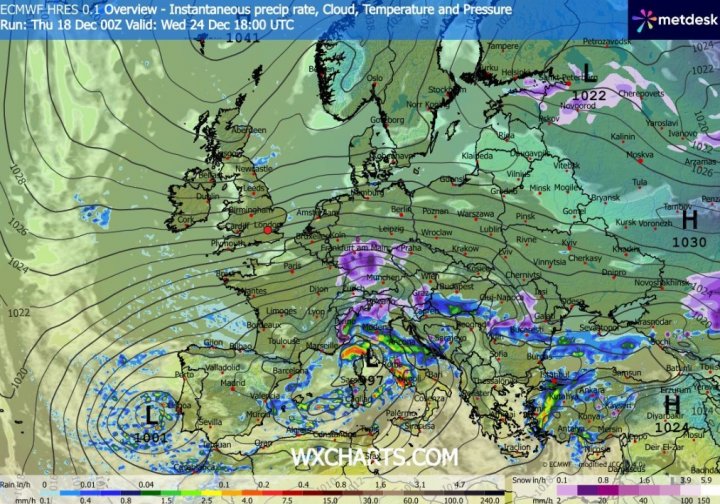 A napok óta tartó szürke, egyhangú időjárást okozó anticiklon lassan kelet felé távolodik, így a ködös rétegfelhőzet is felszakadozik. Bár drasztikus fordulat továbbra sem körvonalazódik, a karácsonyi napok alatt megközelíthet minket egy mediterrán ciklon, amely több hullámban hozhat csapadékot. A pontos forgatókönyv ilyen távlatból még bizonytalan, így nem jelenthető ki egyértelműen, hogy mennyi csapadékot hoz az ünnep.